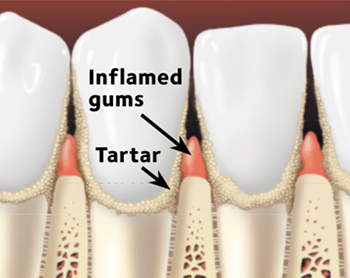 Plaque is a sticky film that is always on your teeth. When plaque is left on your teeth and gums, it can harden. Hardened plaque is also called tartar (TAR-ter). Bacteria that live in the plaque can make your gums red, puffy and swollen. Tartar on your teeth makes it hard for you to keep your teeth and gums clean on your own.