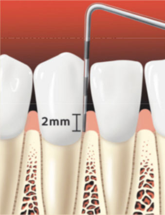 At your dental appointment, your dentist will use an instrument called a periodontal probe to gently measure how deep the pockets are around each of your teeth. When your teeth are healthy, the pocket should be no deeper than 3 millimeters. Typically, the worse the disease, the deeper the pocket. This means the bacteria have more room to grow and cause serious damage to your gums and bone, loosening your teeth. Very deep pockets are a sign of advanced periodontal disease.
