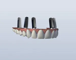 A third option involves placing five or more implants in your jaw and attaching a permanent denture. Your denture is held in place by screws or clasps that secure it to the support posts or bar. It doesn’t touch the gum tissue, which allows you to clean under the denture without removing it. This denture will replace all your missing lower teeth and will not be removed except at maintenance visits. Although cleaning under your denture without removing it is more time consuming and requires more dexterity, many patients who want a permanent denture prefer this option.